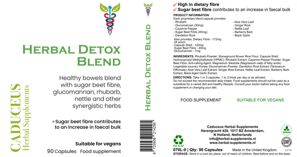 Herbal Detox Blend is een snelwerkende colonreiniger, ontworpen voor chronisch constipaties die een sterke behandeling nodig hebben voor een geblokkeerde darm. Zuiverende middelen zijn gecombineerd met windafdrijvende middelen om grip te voorkomen.