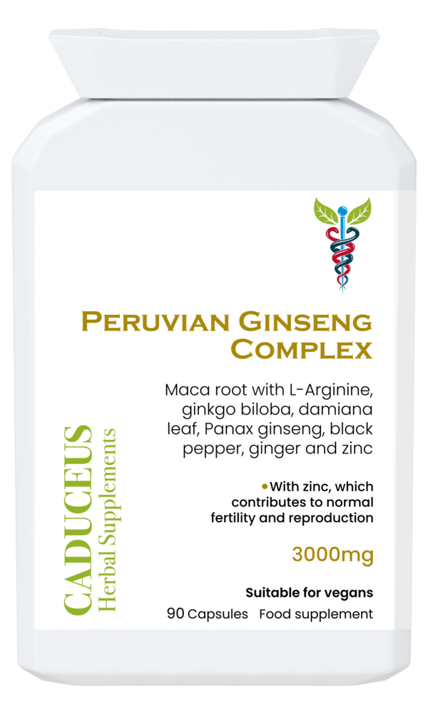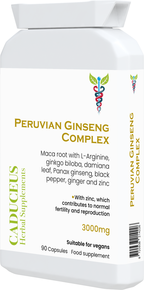 Peruvian Ginseng Complex is een specialistische combinatie van macawortel, kruiden en mineralen, ontworpen om seksuele gezondheid, vruchtbaarheid en voortplanting te ondersteunen.