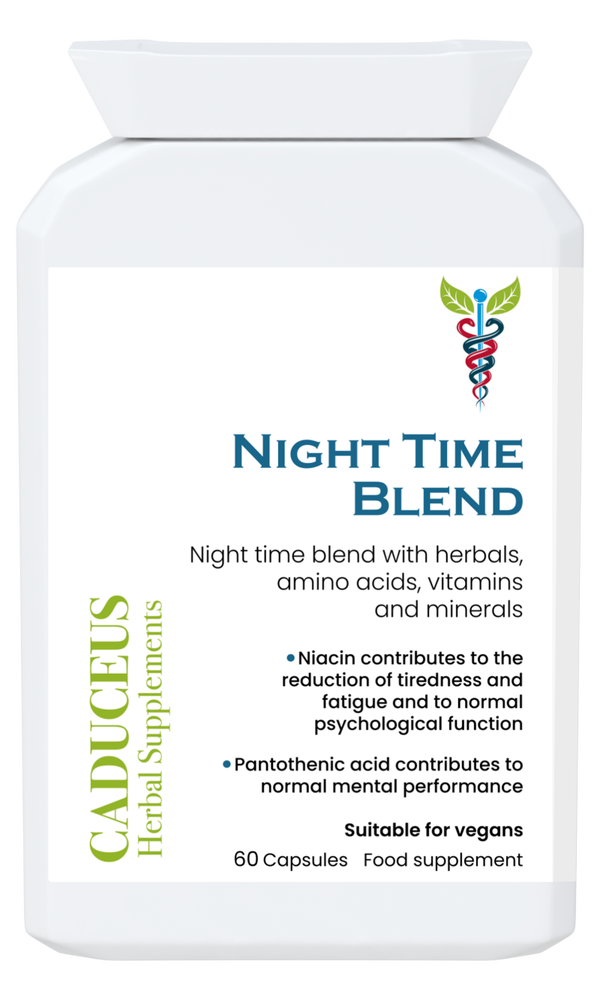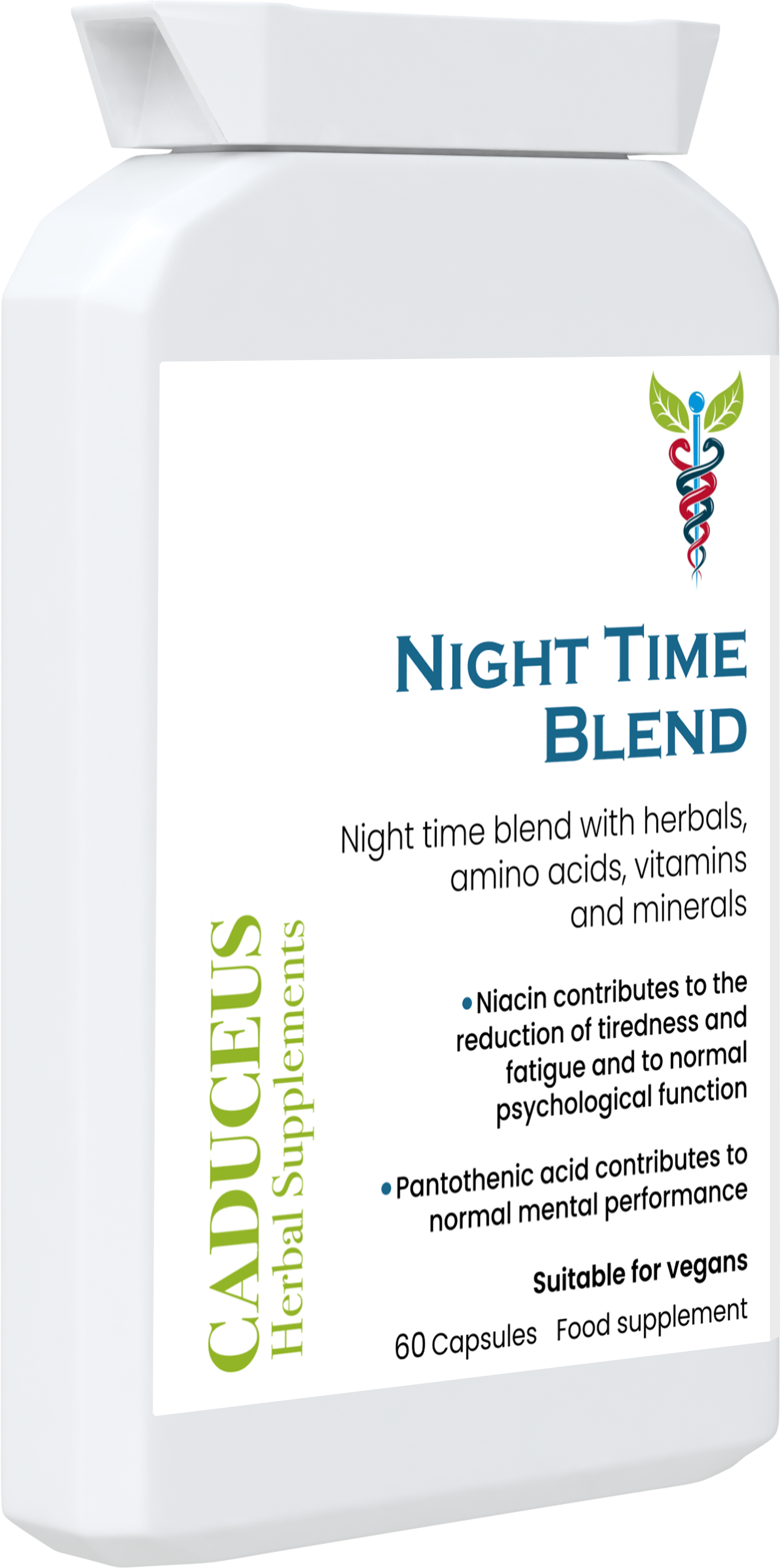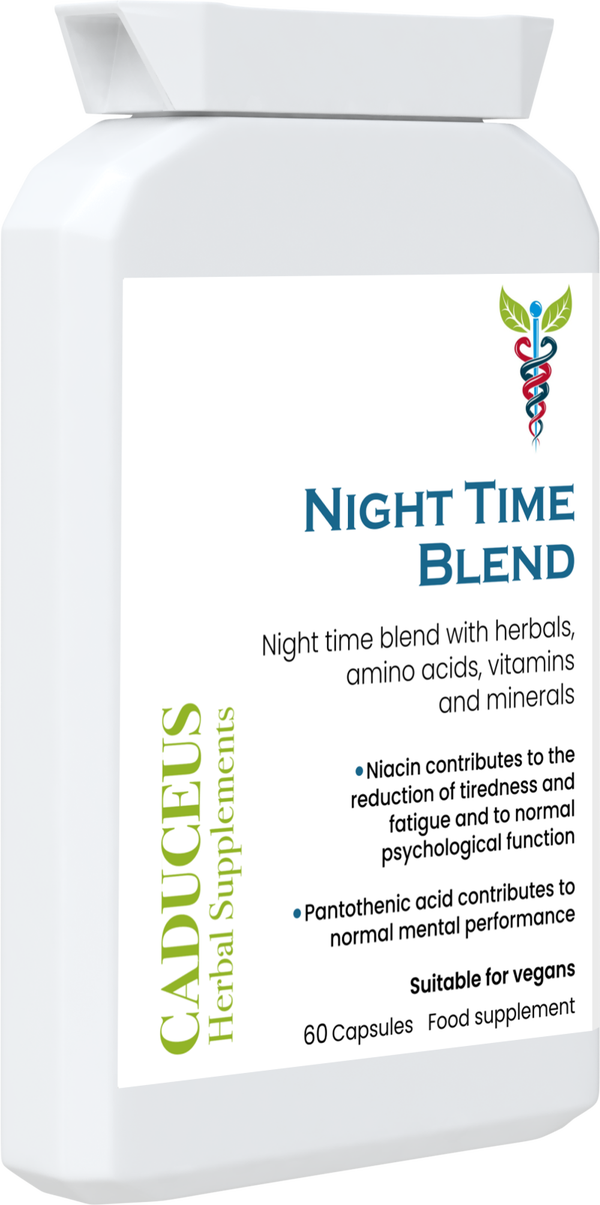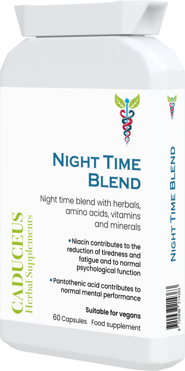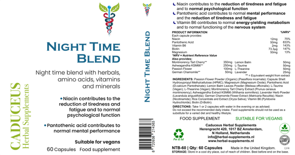 Night Time Blend is een specialistische combinatie voor 's nachts, met speciaal geselecteerde kruiden-, aminozuur-, vitamine- en minerale ingrediënten. Ideale ondersteuning om 's avonds tot rust te komen en 's ochtends fris en energiek wakker te worden.