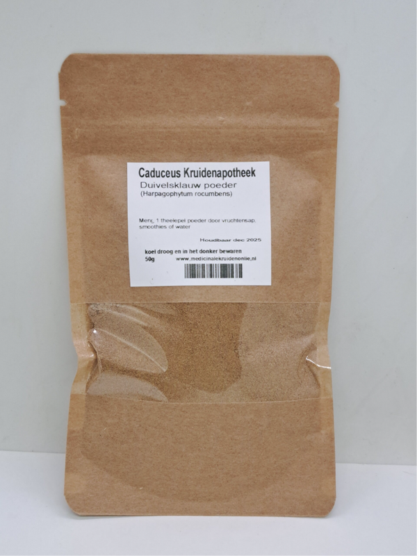 Onze gemalen duivelsklauw helpt je beweeglijk te houden. Duivelsklauw poeder wordt verkregen door duivelsklauw wortel te drogen en te vermalen tot een fijn poeder. Handig om door je smoothies of sapjes te mengen. Ons duivelsklauw poeder is puur en bevat geen andere toevoegingen.