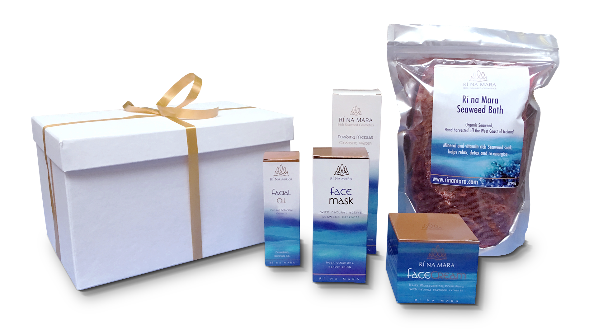 Ri na Mara Seaweed Cosmetics geschenkbox met 5 lichaamsverzorgende producten. Leuk om te geven en te krijgen.